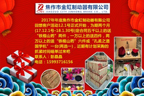 2017年年底焦作市金虹制動(dòng)器有限公司 回饋客戶活動(dòng)12.1號(hào)正式開始
