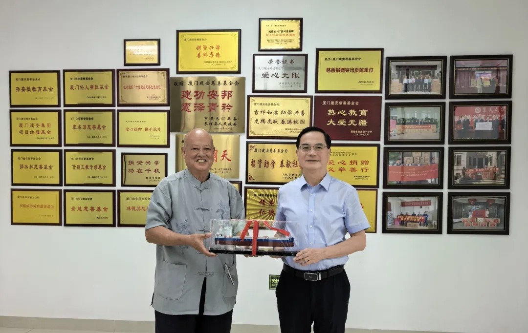 24日下午,集美大學(xué)黨委書(shū)記邱偉杰、校辦主任黃海宏、校董辦主任呂嫻一行蒞臨廈門(mén)建安慈善基金會(huì),拜訪(fǎng)校董孫吉龍先生。孫吉龍先生對(duì)邱書(shū)記一行的到來(lái)表示熱烈歡迎。
